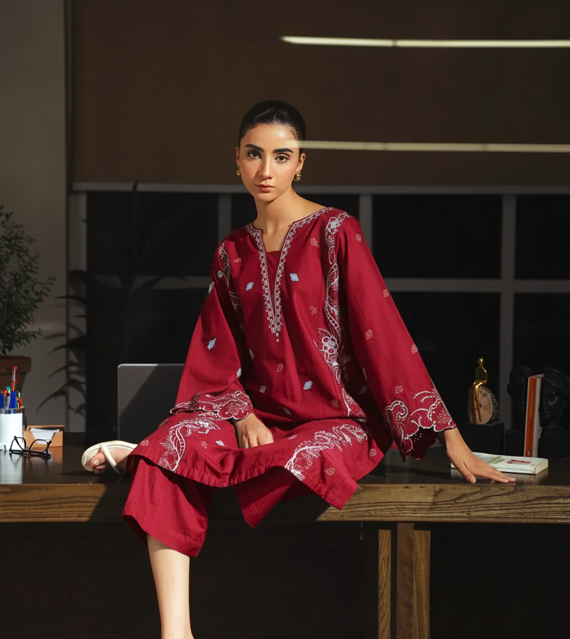 Cranberry Bloom Premium 2 Piece Stitched Set