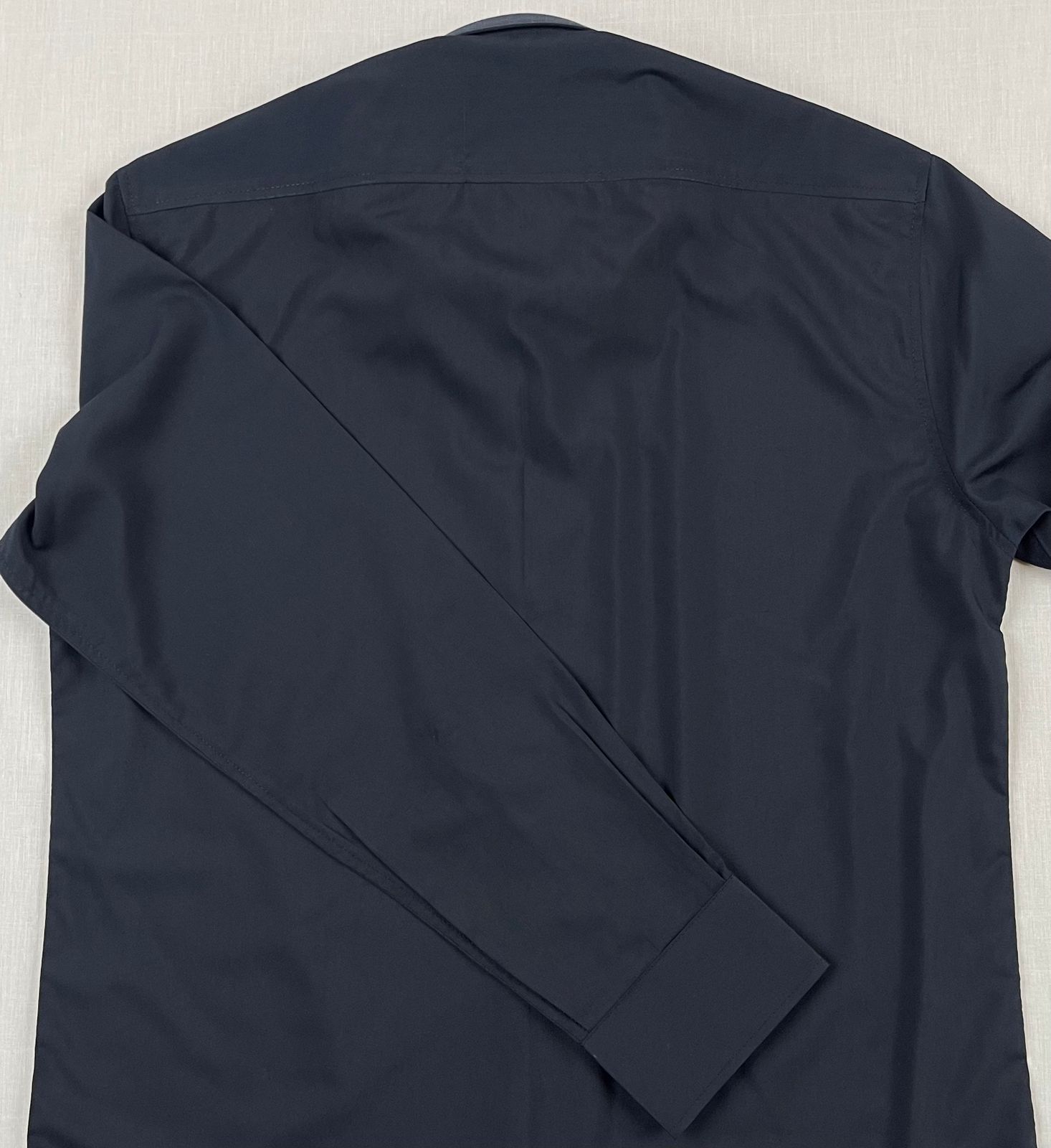 - Collar: Features a standard point collar. This holds its shape well with a tie.